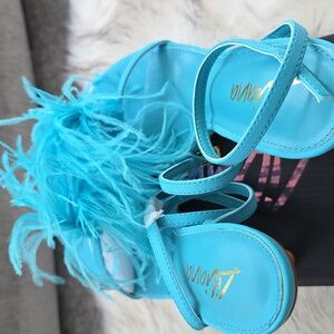 Step out in style with 's turquoise feathered sandals. Perfect for adding a pop of color to any outfit.