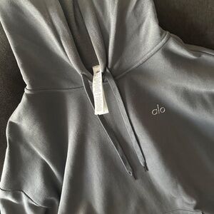 Soft and comfortable ALO Yoga Accolade hoodie in steel grey (grey blue color)