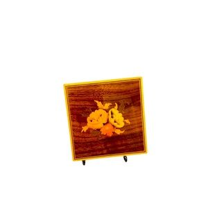 This elegant decor piece showcases a beautiful floral inlay design, highlighted by vibrant yellow hues against a rich brown wooden frame. Its traditional aesthetic makes it an ideal addition to any classic or vintage-inspired setting, adding a touch of sophistication and charm.