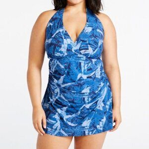 L.L. Bean Blue Halter Neck Shaping Clasp Closure One Piece Swimsuit w skirt 10R