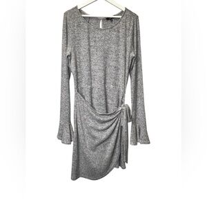 Lulus | Favorite Tune Heather Grey Faux Wrap Sweater Dress Sz M
