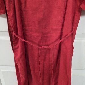 Elegant scarlet dress with button accents. Perfect for any occasion. linen