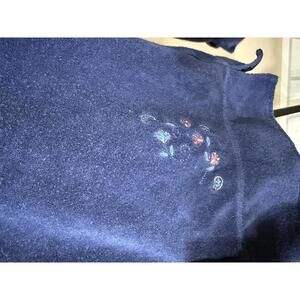 Features a soft fabric with a subtle embroidered design near the bottom hem depicting a character and floral elements.