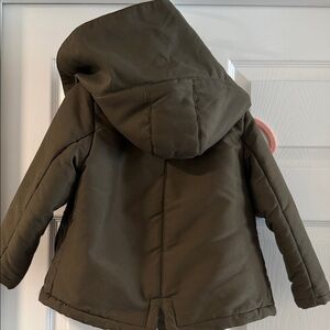 Keep your child warm with this cozy olive hooded jacket. Featuring a soft lining and durable design, it's perfect for chilly days.