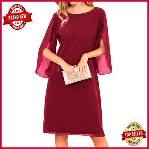 Chiffon Flutter Sleeve Dress Elegant Cocktail Party Wedding Wear Knee Length