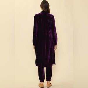 Anthropologie Skies are Blue ~ Plush Velvet Duster Coat in Dark Plum M