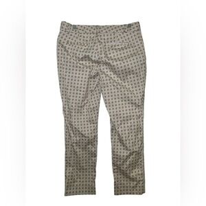 Banana Republic pants, ankle pants, slim fit pants, printed trousers, cotton pants, work pants, geometric print pants, brown white pants, size 4