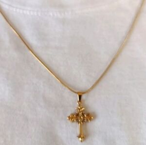 Retro Style Gold Stainless Steel Cross Necklace 23 Inches New