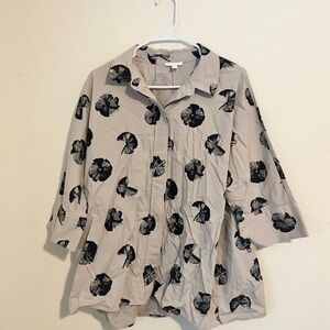 Has a placket to cover buttons.