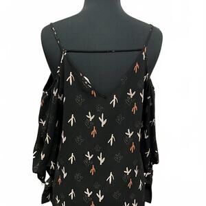 Soprano relaxed fit black blouse with neutral cactus print. Cold shoulder with ties at 3/4 sleeve. Size L