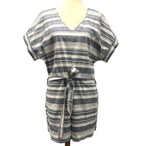 Madewell Perimeter Striped Linen Blend V Neck Casual Romper Women’s Large