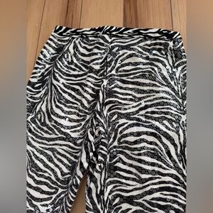 Cache Zebra Print Straight Leg Sequined Pants sz 6