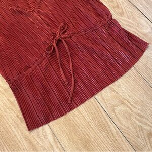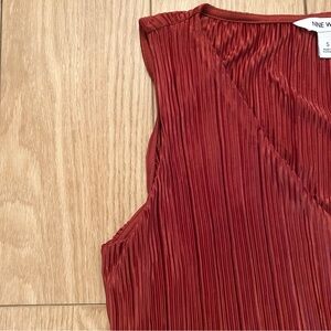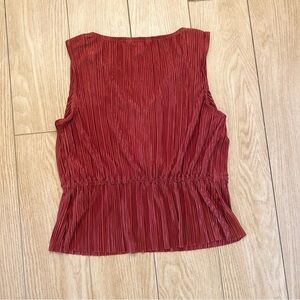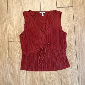Nine West Sleeveless V-Neck Pleated Blouse Tie Waist | Rust Red Orange | Small