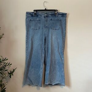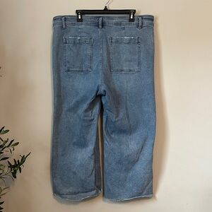 Elevate your wardrobe with these light blue wide leg jeans. Perfect for casual outings.