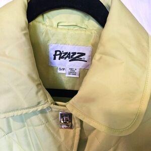 Make a bold statement with this Y2K-inspired lime green puffer jacket from Pizazz. Designed with a unique quilted texture, it features distinctive twist metal tab buttons that slide into place and turn to lock, adding a touch of retro flair. The vibrant color and edgy design make it a standout piece, perfect for adding a pop of bold style to any outfit. Stay warm while embracing the unmistakable charm of early 2000s fashion with this eye-catching jacket.
