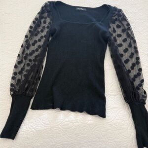Vici Black Top with Sheer Polka Dot Sleeves