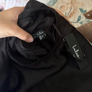 LULU’S Classic Elegance Black Satin Sleeveless Mock Neck Mini Dress