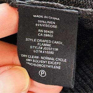 Theory Draped Open Front Flamme Linen Blend Cardigan (size S)