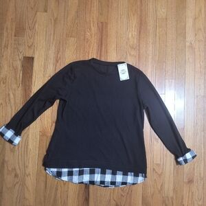 NWT La Mode brand (Amazon) long sleeve shirt with faux shirt tail and cuffs without the bulkiness of having to wear both shirts, black and white and plaid