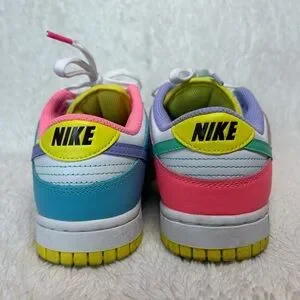 Colorful Nike sneakers. Features pink, purple, green, and white. Perfect for play and style.