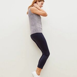 These high-waisted pants are made from a stretchy compression knit that keeps you feeling tucked in. The slightly cropped silhouette adds a playful touch, and an ever-so-slight sheen lends an elevated vibe.