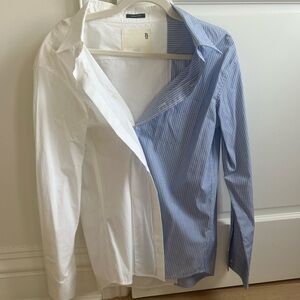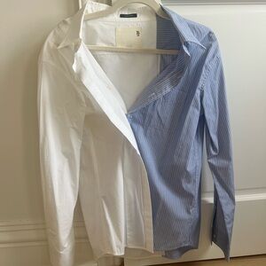 R13 white and blue button down combo shirt open collar