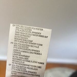 46% polyester, 30% recycled polyester, 21% acrylic, 3% spandex