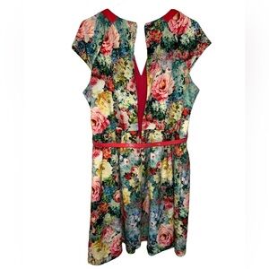 Rabbit Rabbit Rabbit Floral Pink Trim Belted Dress Size 16P Cottagecore Summer