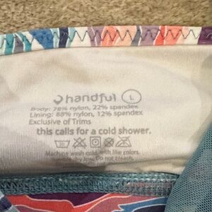 Colorful floral design with bold patterns. Teal option with sleek style. Bottom is a handful brand with front zip. Ideal for active wear.