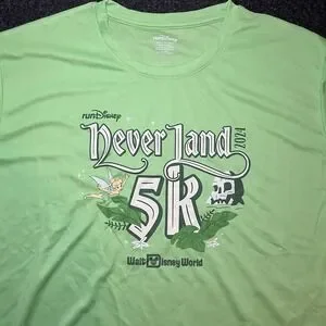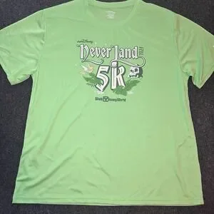 Run Disney Neverland 5K Green Polyester T Shirt Mens 2XL
