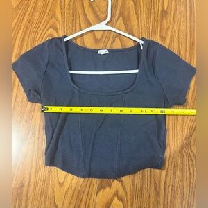 Garage Navy Blue Ribbed Crop Top - Size Medium