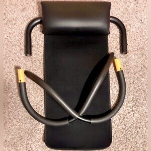This Weider Ab Shaper was designed to assist your neck by transferring some of the weight of your head to your arms while doing abdominal & oblique crunches. It’s very sturdy. The headrest is well padded, there’s an attached thin body pad, and the arms are made of heavy duty metal wrapped with foam. These sell for $90 or more on EBay with shipping.