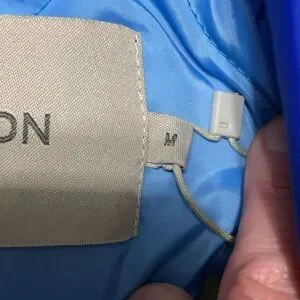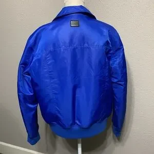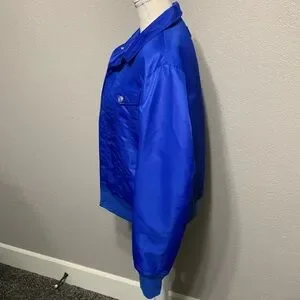 Designer sample in “Dazzling Blue” No fabric tag included. Exterior is a windbreaker-type material and interior is quilted. Medium weight.