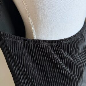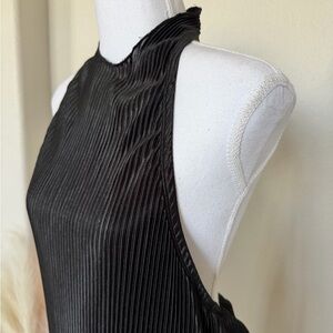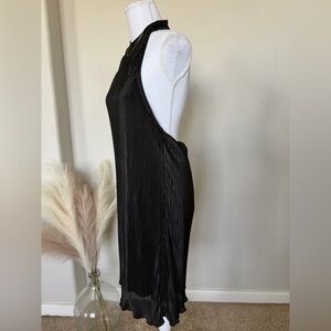 This elegant black pleated dress is perfect for any occasion. Its sleek design offers a timeless look.