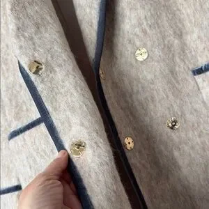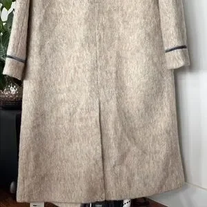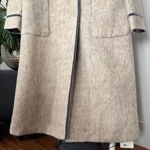 New Motf Wool Blend Beige Ivory Long Duster Coat/Jacket Sz L Blue Velvet Trim