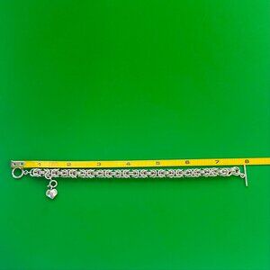 Sterling Silver Byzantine Chainmail Bracelet w/ Hill Tribe Clasp & Heart 36.25g