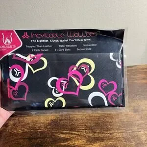 Amaranth Inevitable Wallet Clutch Heart Print Tyvek Water Resistant Black Pink