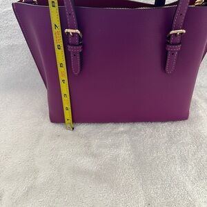 Elegant Coach crossbody in vibrant purple leather. Gold-tone accents and optional cross body adjustable strap. Bag had a center coach zippered compartment on the inside. Bag is from a smoke free home and has never been carried!! The picture shows a close accuracy of the color. It’s a fun color for any season!!
