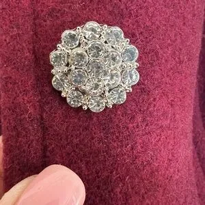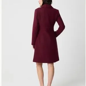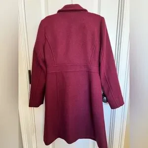 I love these coats from J Crew but they never look quite right on me. This is so beautiful with the jewel button closure, and the deep burgundy fabric. The actual color is the stock photos (we are having a sunny day today). Very warm and beautiful on. This size is sold out at J Crew.