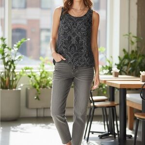 100% Silk elegant gray top with paisley design. Sleeveless and versatile.