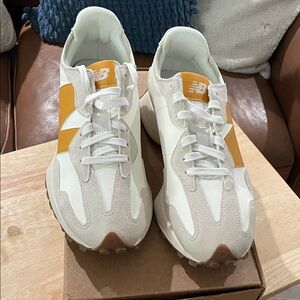 New Balance White and Orange Sneakers