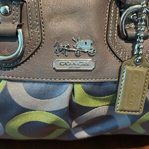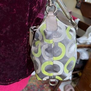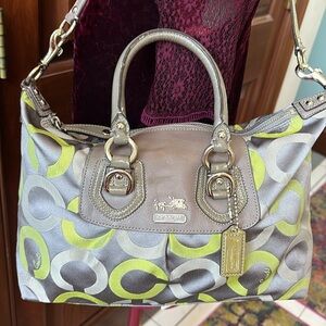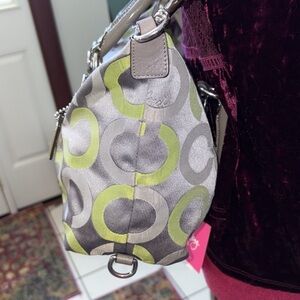 Coach Vintage Ashley convertible shoulder bag satchel Gray/Green lime canvas