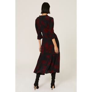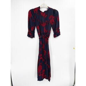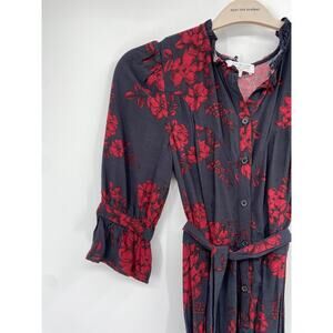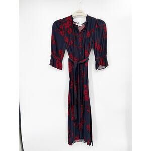 Marissa Webb Collective Navy Red Floral Print Belted Button Front Shirt Dress