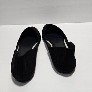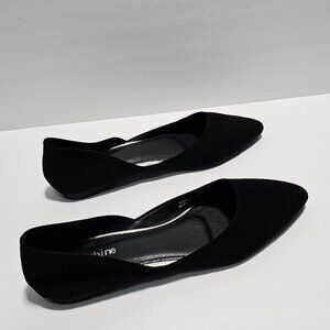 New, never worn, black suede women's pointed-toe ballet slip-on flats, rubber sole. Size 9, fits more like an 8.5