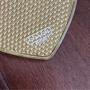 Acrylic hangtag with unique design. Yellow with lighter Coach heart Poppy design on one side. Logo on reverse side.