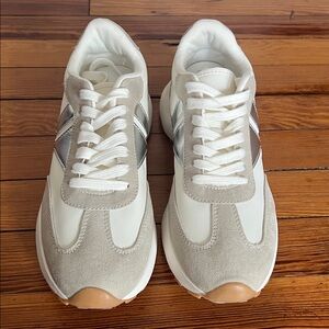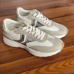 Women's White and Tan Sneakers