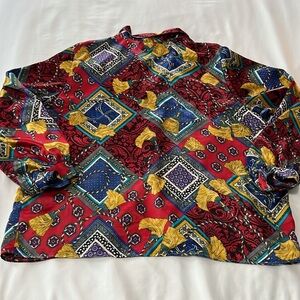 Excellent vintage condition with exception to missing bottom button. 100% Polyester- Feels like Satin. Listing as extra large based on measurement, tag states size 20.