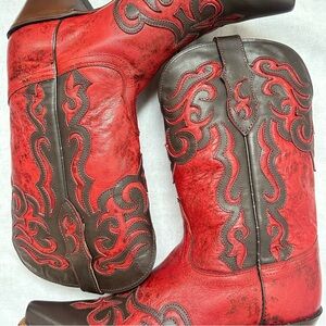 Tony Lama Women’s Red Brown Leather Cowboy Western Snip Toe Boots Size 9.5