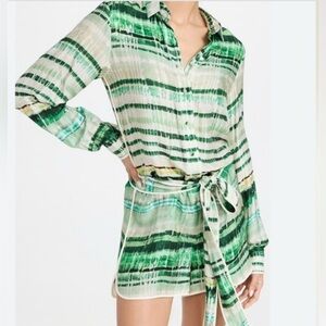 This is an Alexis Florentyn silk blend chiffon collared button-down belted romper in emerald green. This sexy silk romper is a show stopper for date night- it’s PERFECT for travel because it folds up really tiny. No signs of wear that I can see, I’ve just had it for a long time.