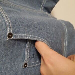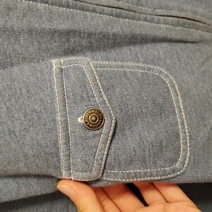 Lauren Ralph Lauren 100% cotton hooded light zip jacket. Light blue (blue jeans). 4 front pockets. Size M, see pictures for measurements. Pulled thread inside as seen on pictures but doesn't show on the outside of the jacket. Gentle signs of wear, mostly around the wrists as seen on pictures. Non smoking house.